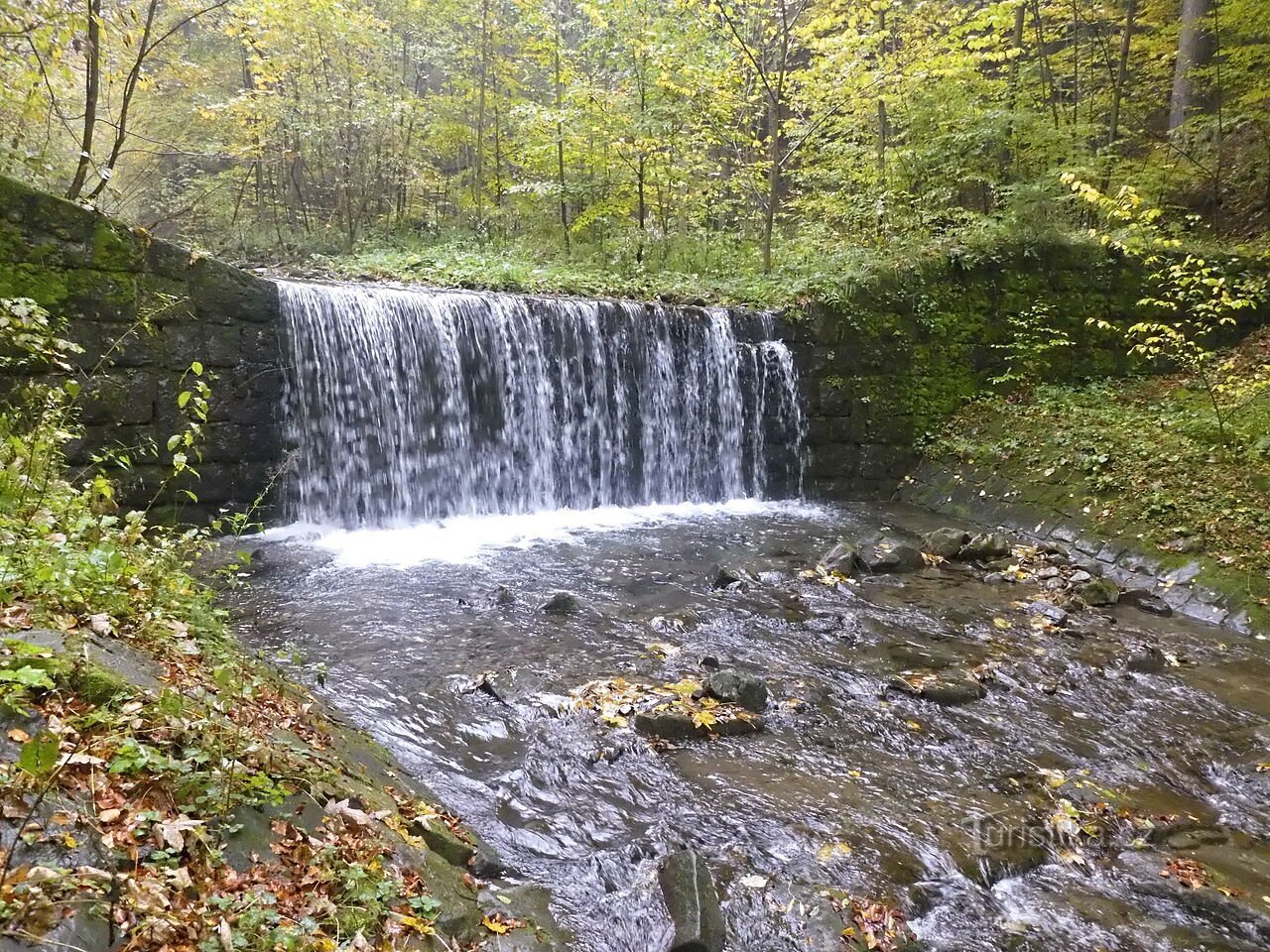 Zajímavé kaskády na spodní části potoku Mazák (pod chatovou oblastí Muchovice).