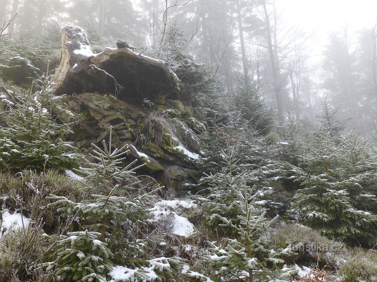 Zajímavé skalní a kamenné útvary na sever od hřebenovky Sulov - Mosty u Jablunkova, díl 5.