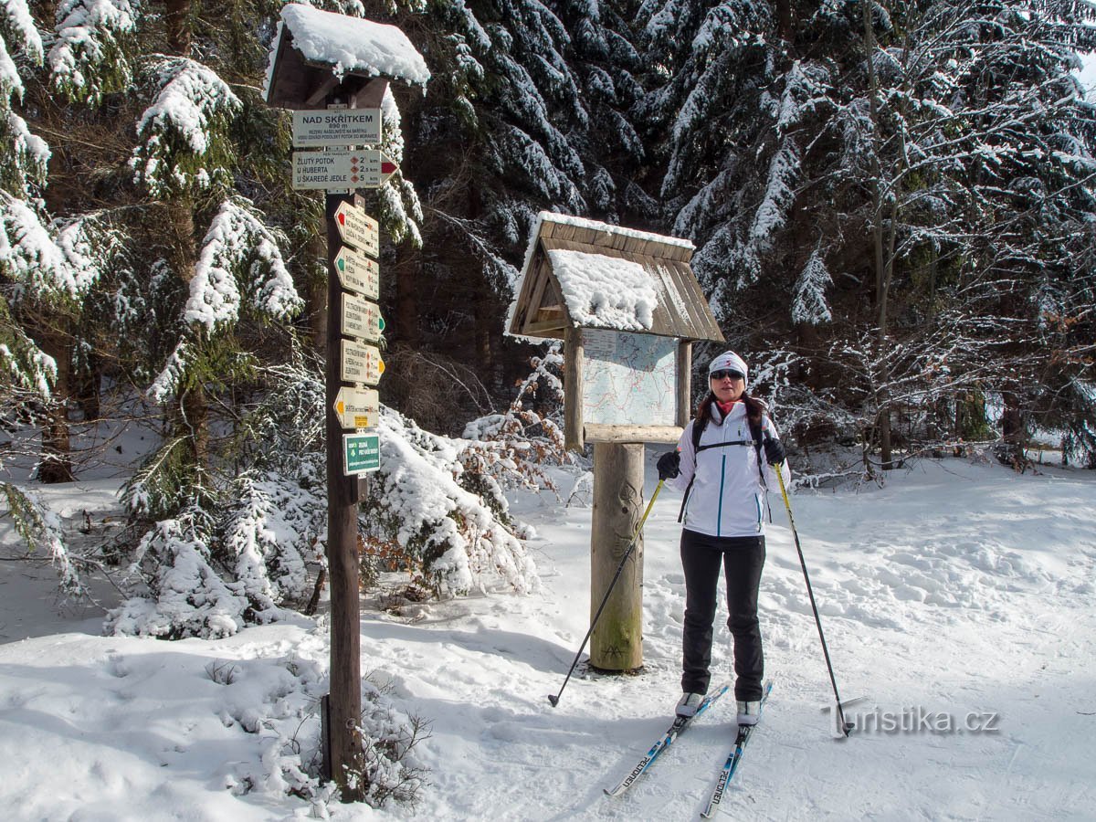 V nížinách i středních polohách je sice zima vrtkavá, nebo žádná. Řízením příznivějších okolností přece jen ve vyšších polohách něco zůstává, tak se nabízí zase občerstvit paměť a zajet do míst, které jsme loni na běžkách jaksi vynechali. Vlastně jde o zažitou trasu ze Skřítku k Alfrédce a zpět.