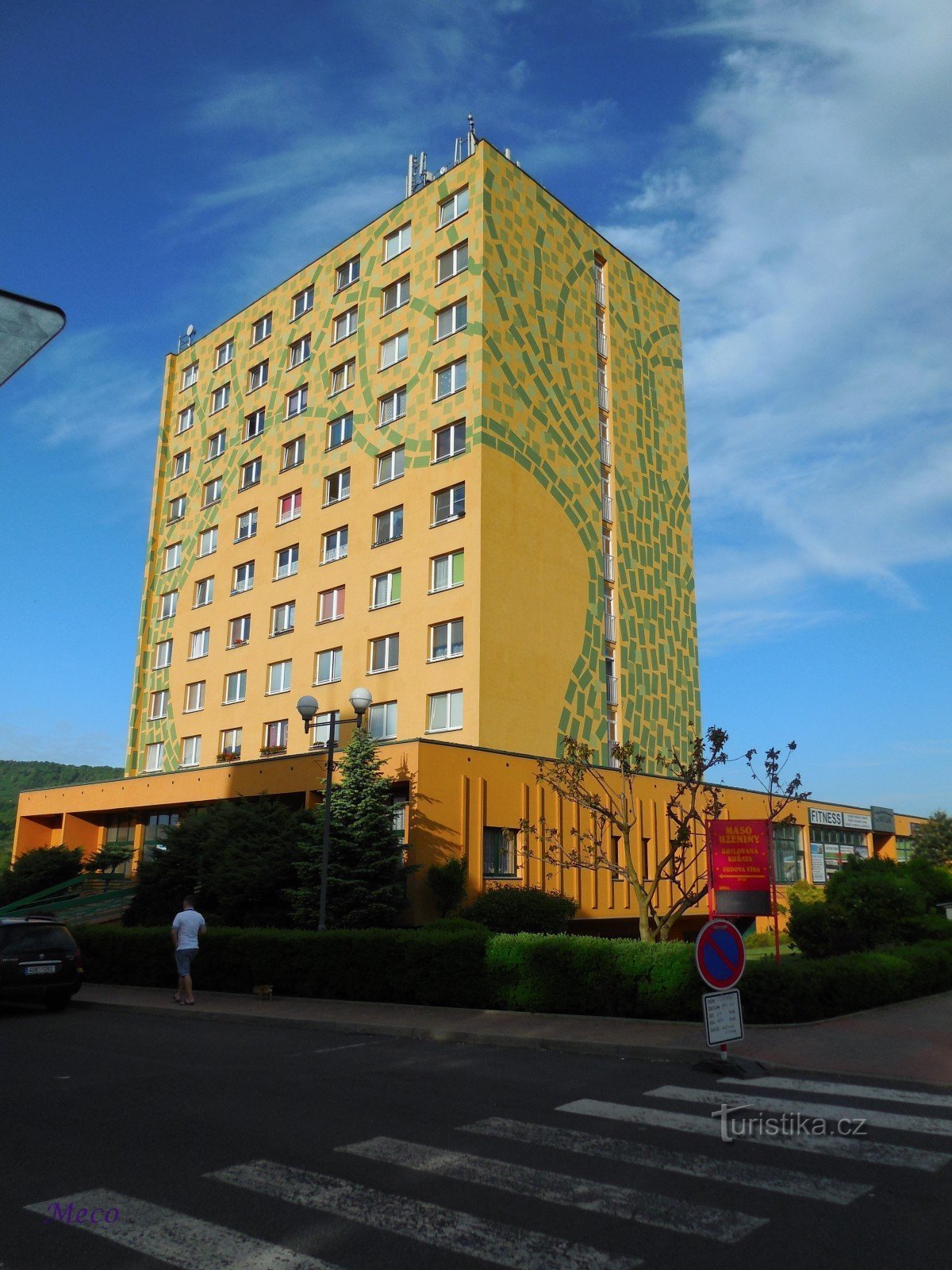 Zelený strom není skutečný strom, ale vysoká moderní budova stojící v centru Kadaně v těsném sousedství městské památkové rezervace.