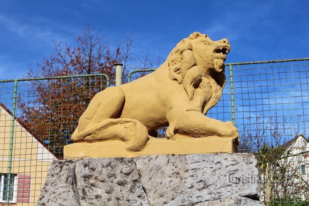 Pomníky padlým ve světových válkách jsou sice smutným, ale v mnohých případech i hodnotným uměleckým dílem. Patří k návsím i náměstím v celé zemi, podobně jako kapličky a kostely. Jedním z těch zajímavých je i pomník v Žichovicích. Nachází se sice mimo střed obce, a to v její východní části, při silnici do Nezamyslic. V nedávné minulosti byl pomník opraven, ale mám pocit, že se to nepovedlo. Lev…