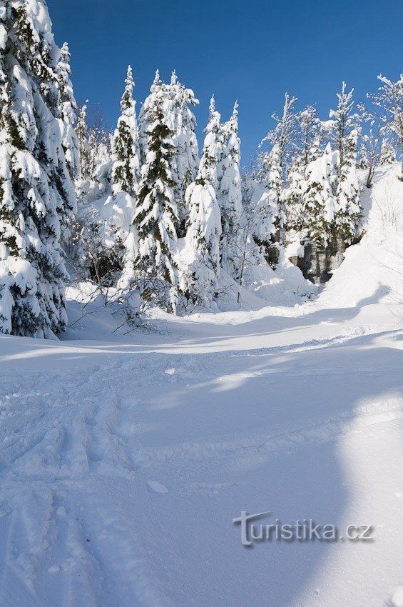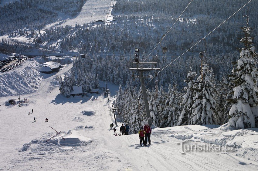 Včera bylo nádherně a výlet na Rabštejn se vyvedl. Když už ta zima hezky nadělila, přišlo mi líto neděli sedět doma. Navíc jsem chtěl něco nového nafotit, řekl jsem si, že by byla zajímavá Malá hřebenovka. To znamená Ramzová – Červenohorské sedlo. A protože většinou jezdíme od Ramzové (s pomocí lanovky), tentokrát ze sedla, nakonec autobus jede nahoru skoro do stejné výšky jako je Černava, takže…