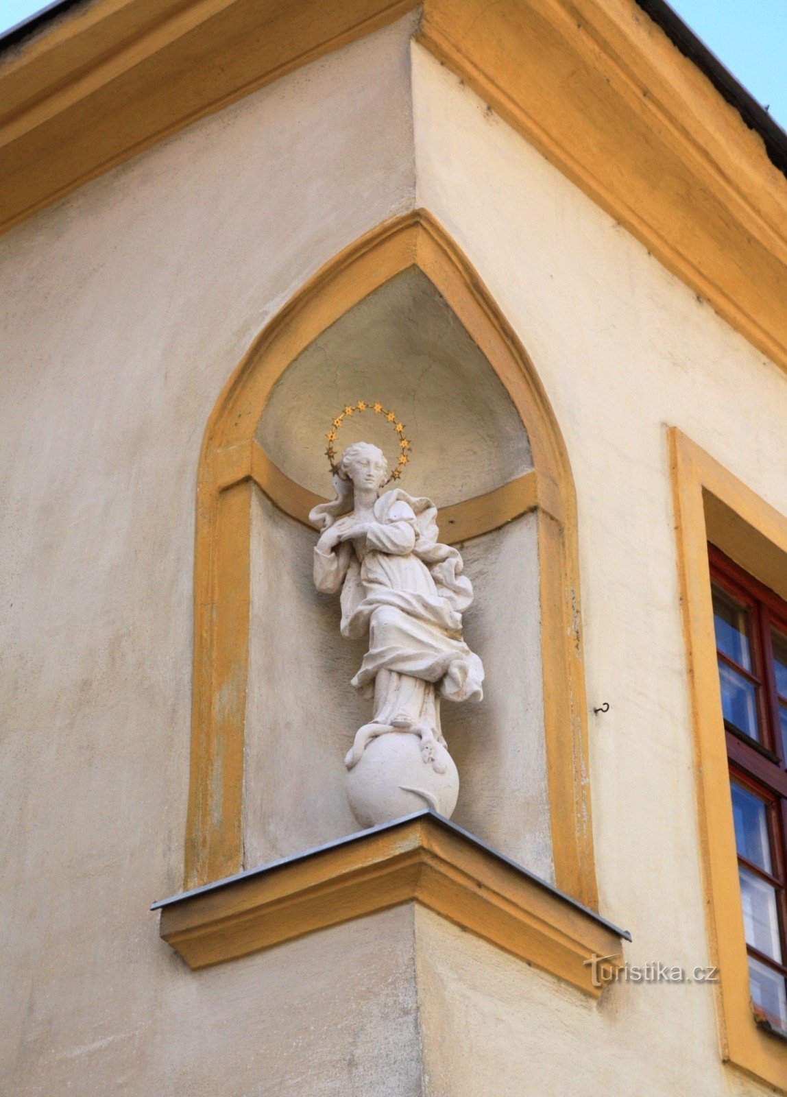 Původně zde byla gotická židovská škola, v jejímž sousedství stála synagoga. Dnes je zde ZŠ Václavské náměstí. V suterénu se dochovala židovská lázeň - mikve. Na nároží ve výklenku v prvním patře je umístěna soška Panny Marie z 18. století. Dům se nachází na Veselé č.3.