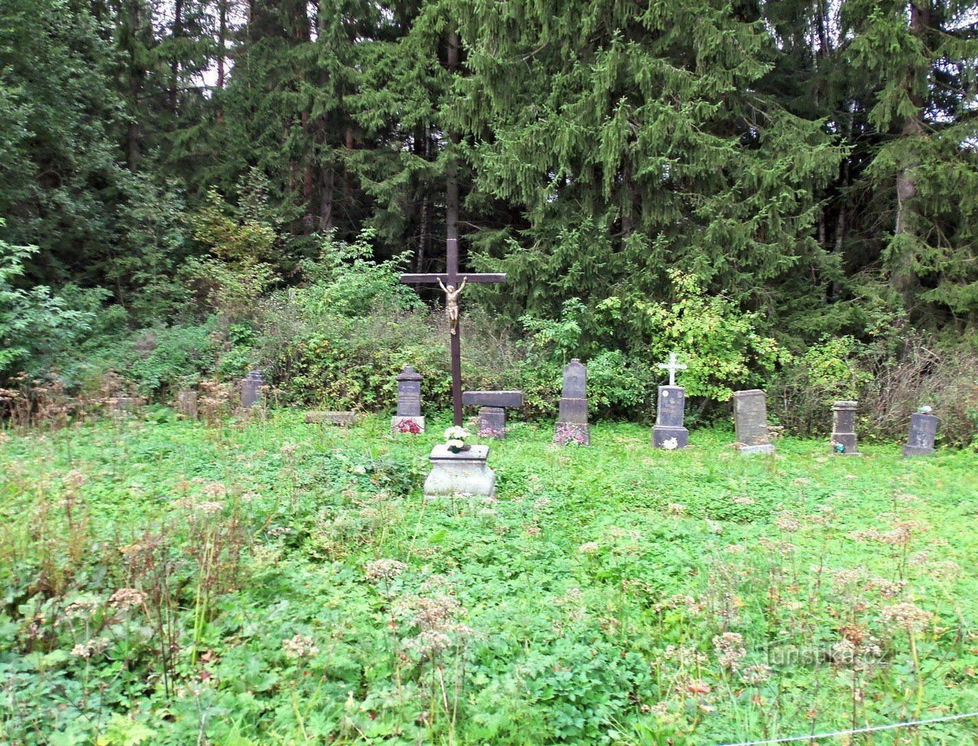 Jedeme z Prachatic směrem na Volary. Pak odbočíme směrem na Blanský mlýn a jedeme až k lesnímu hřbitovu s označením Cudrovice, za nímž je u lesa malé parkoviště s hliněným podkladem. Zde necháme auto a jdeme dál po pěšině lesem mírně z kopce. Posléze odbočíme vlevo strmě dolů přes kořeny a balvany…