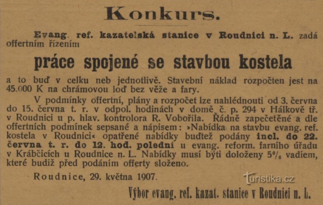 Zřízení chrámu Českobratrské církve evangelické v Roudnici nad Labem