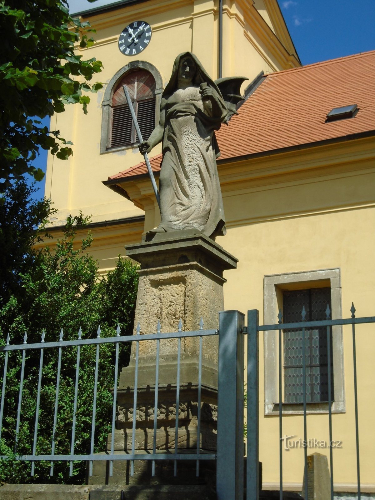 Velkým symbolem probluzské návsi je její sochařská výzdoba, která pochází z 90. let 19. století a jejími iniciátory byl zdejší farář P. Jan Brunclík spolu s c. k. ředitelem odborné školy sochařské v Hořicích Vilémem Dokoupilem. Sice jí dominuje socha Panny Marie na vysokém podstavci před kostelem Všech svatých, ale ještě dříve tu byly zřízeny sochy Vzkříšení a Smrti, jež měly krášlit vchod na…
