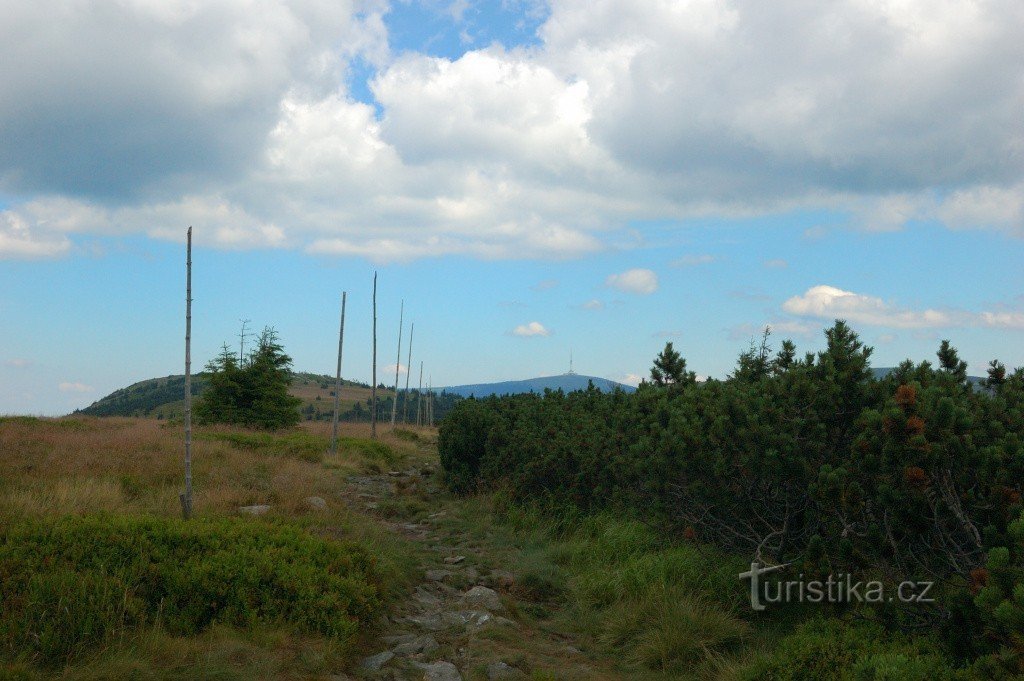 Mírným stoupáním po zpevněné cestě (asfalt) přicházíme k rozcestníku Nad Skřítkem. Pokračujeme dál po zelené (souběžně se žlutou).…