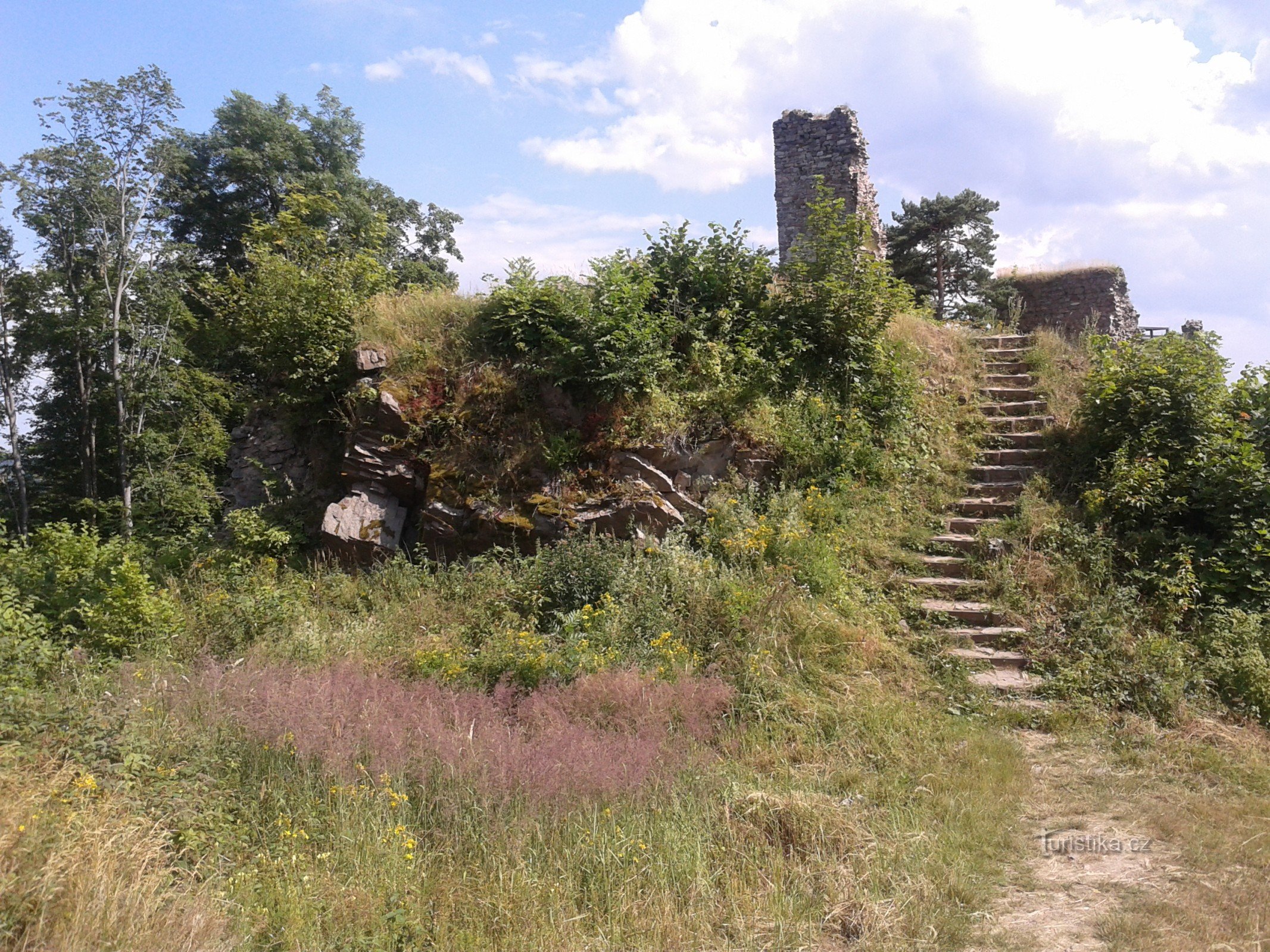 Zubštejn. Zřícenina hradu vzdálená cca 6 km od města Bytřice nad Pernštejnem. Auto lze zanechat na parkovišti na začátku obce Pivonice. Ukazatel na stromě hlásá, že odsud je to k hradu 0,5 km. Neinformuje však, že ten půlkilometr je lesem do vražedně strmého kopce, což je ve třiceti stupních a sandálech celkem žůžo! O téhle zřícenině jsme v životě neslyšeli ani jsme neměli tu čest spatřit…